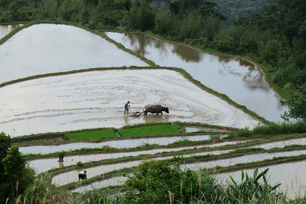 水牛,曾是台灣人重要的精神象徵,用堅毅平穩的步伐,逐夢踏實。至今,平地的耕田模式已然改變,但水牛群仍一如既往地在貢寮山區生活著。牠們在地勢蜿蜒曲折的水梯田,翻犁整地表現優異!也因此,貢寮水梯田的牛耕文化不曾間斷,水牛依然是山村老農的得意助手。